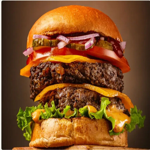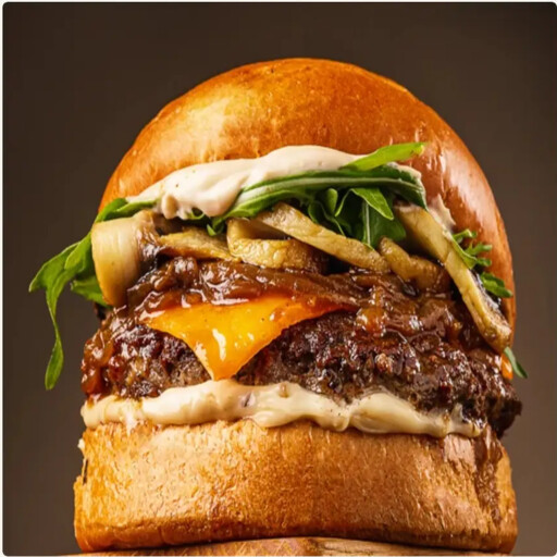 Аппетитная сила двух котлет из мраморной говядины в сочетании с чеддером, овощами и соусами ББ и Гриль — и всё на булочке бриоши